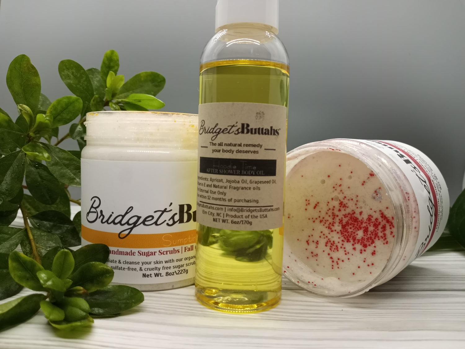 We like to make sure we are giving you enough product to last! So, we make sure you give you 8oz of our butters and scrubs!